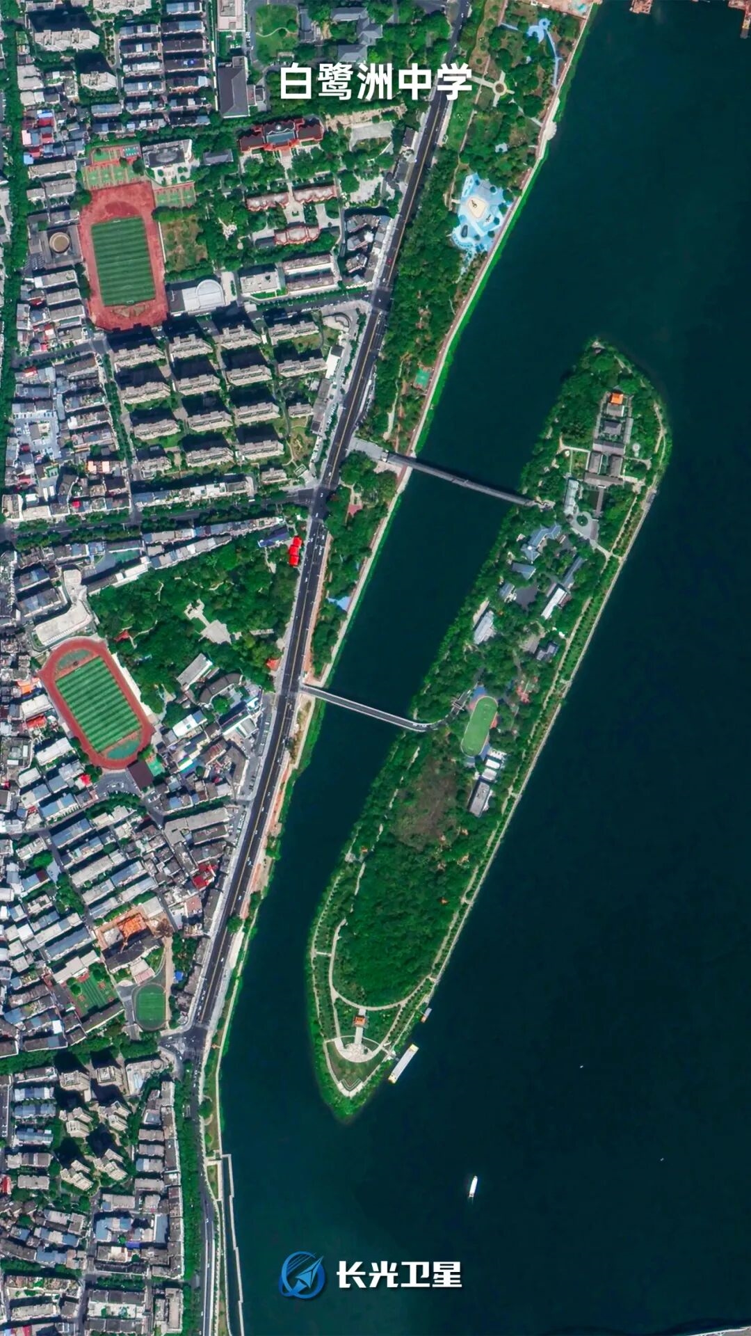 从太空俯瞰江西吉安,在赣江的碧水中,一片1.5平方公里的梭形小岛,如同停泊的孤舟。引人注目的是,岛上约三分之一的区域,被一座学校的建筑群与绿茵场所占据。这便是中国教育地理上一个独特的存在:江西省吉安市白鹭洲中学(校本部)。