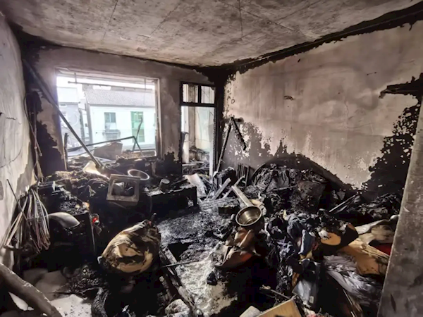多个插线板串联宛如蜘蛛网 浙江一出租房烧了个精光