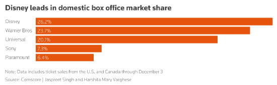 迪士尼是《复仇者联盟》、《银河护卫队》、《加勒比海盗》和《星球大战》等热门电影系列的大本营。