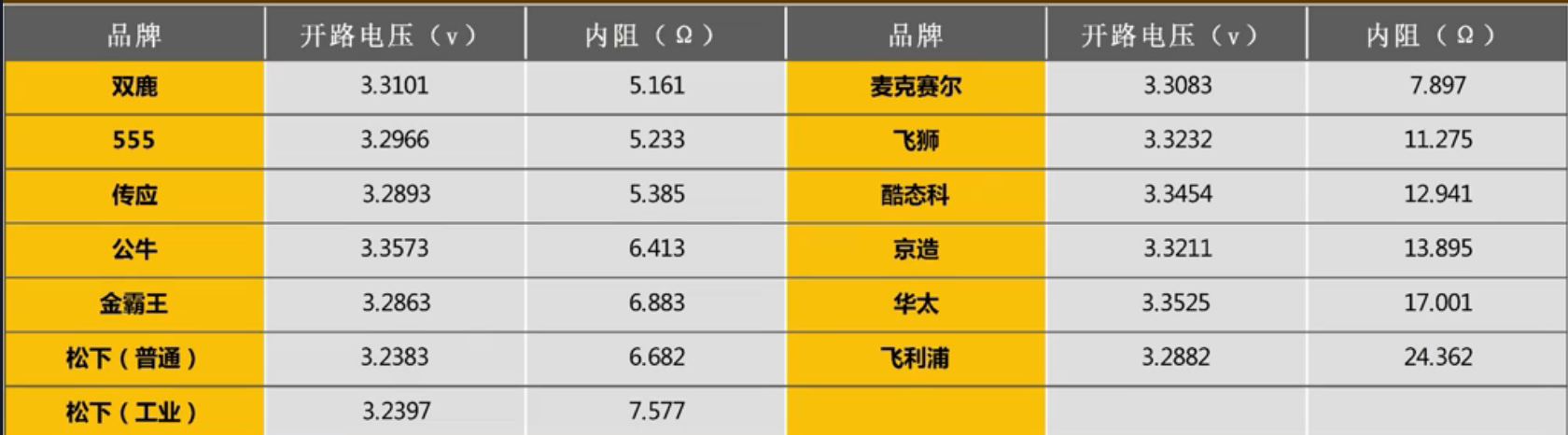 随后博主用内阻仪分别测试了开路电压和内阻,其中开路电压基本都在3.2V左右,差距并不大。
