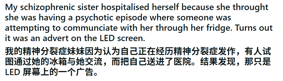 事发几天后,Carol的家人在网络上偶然发现,这条令Carol陷入恐慌的讯息,实际上是Apple TV+某剧集的宣传广告,通过三星冰箱的Family Hub屏幕推送,家人向Carol确认后,她证实自己看到的正是这句措辞。