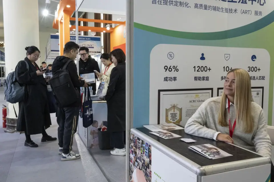 总部位于加利福尼亚州的代孕机构ACRC Global面向中国及其他国际客户开展业务,该公司于10月在北京医疗健康展览会上设立展位,重点关注出国就医事宜。(图片 来源:Gilles Sabrié,《华尔街日报》)