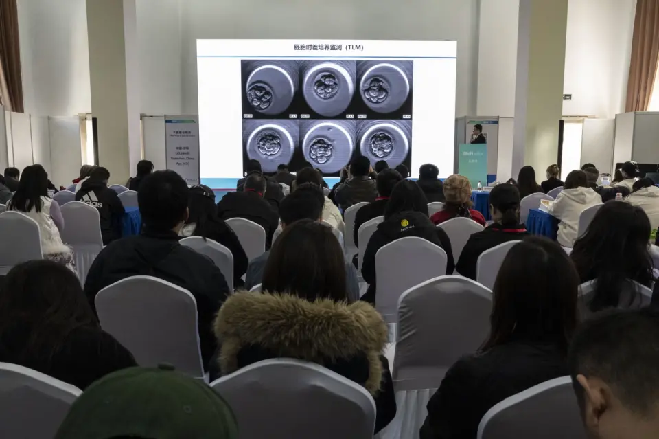 一张幻灯片展示了北京健康博览会上的胚胎。图片 来源:吉尔·萨布里埃(Gilles Sabrié),《华尔街日报》。