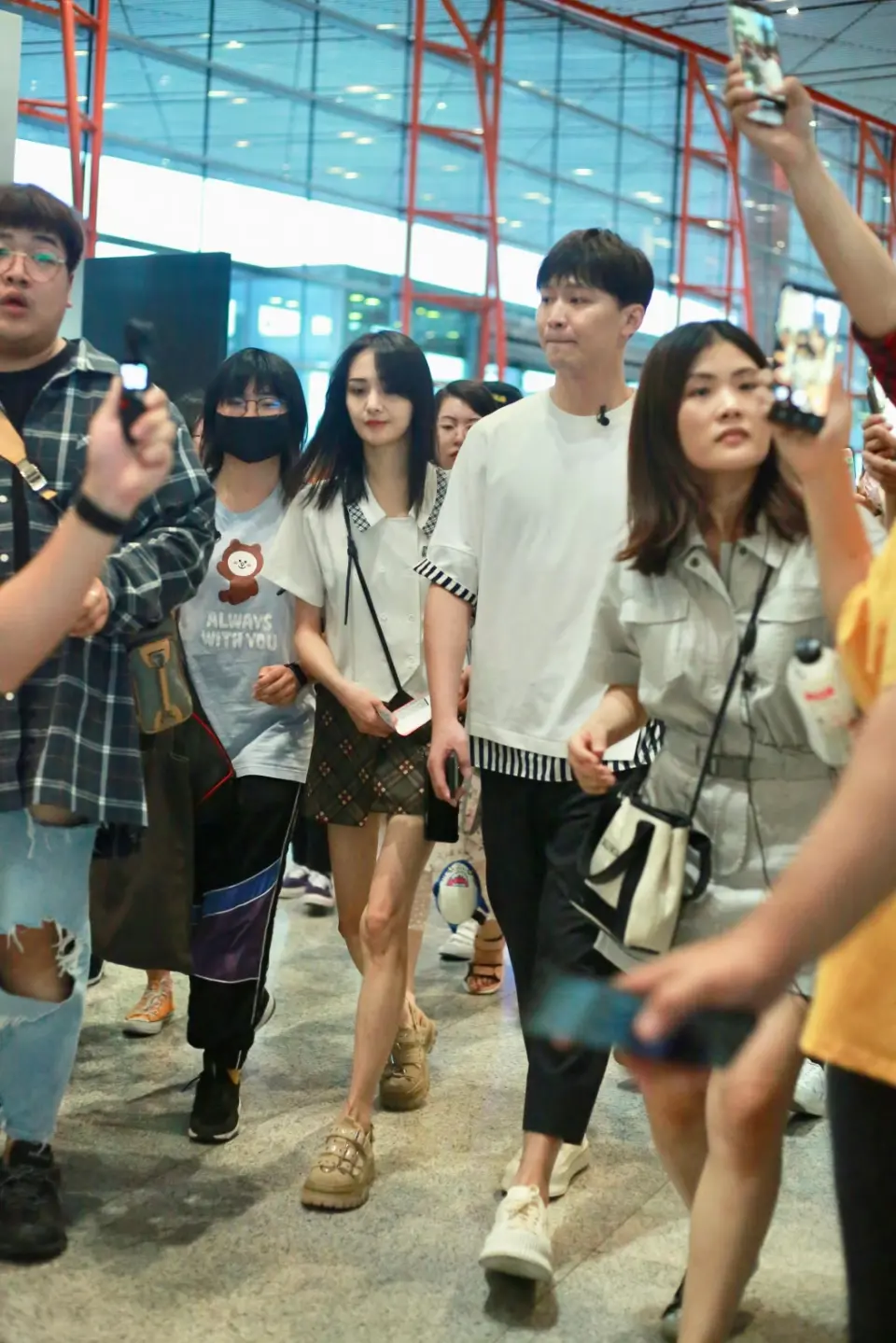 2019年,中国女演员郑爽(左)与男友张恒抵达北京机场。 图片来源:ImagineChina/Alamy