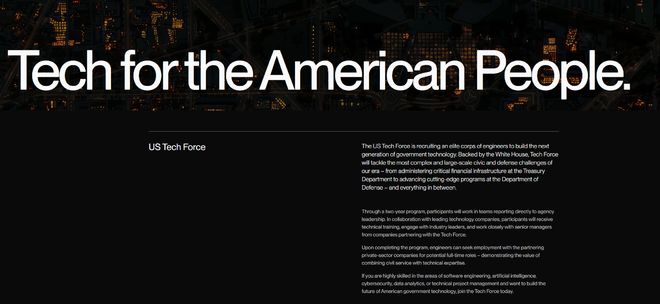 简单来说,“美国技术部队”将由约1000名技术专家组成,他们受聘于各机构,旨在加速人工智能的实施,并解决联邦政府面临的最关键的技术挑战。