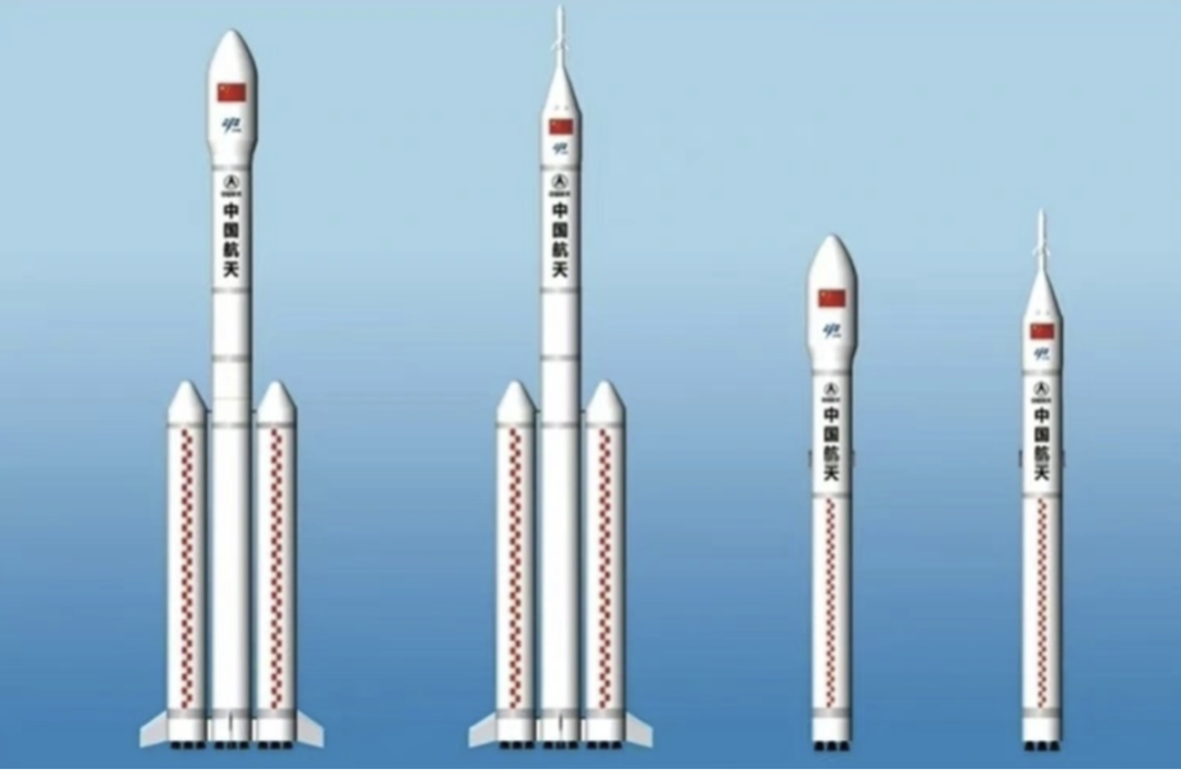 这是我国自主研制的新一代载人运载火箭,代号为“CZ-10”,采用2个助推器的三级构型,将在载人登月任务中承担梦舟Y载人飞船和揽月月面着陆器发射任务。