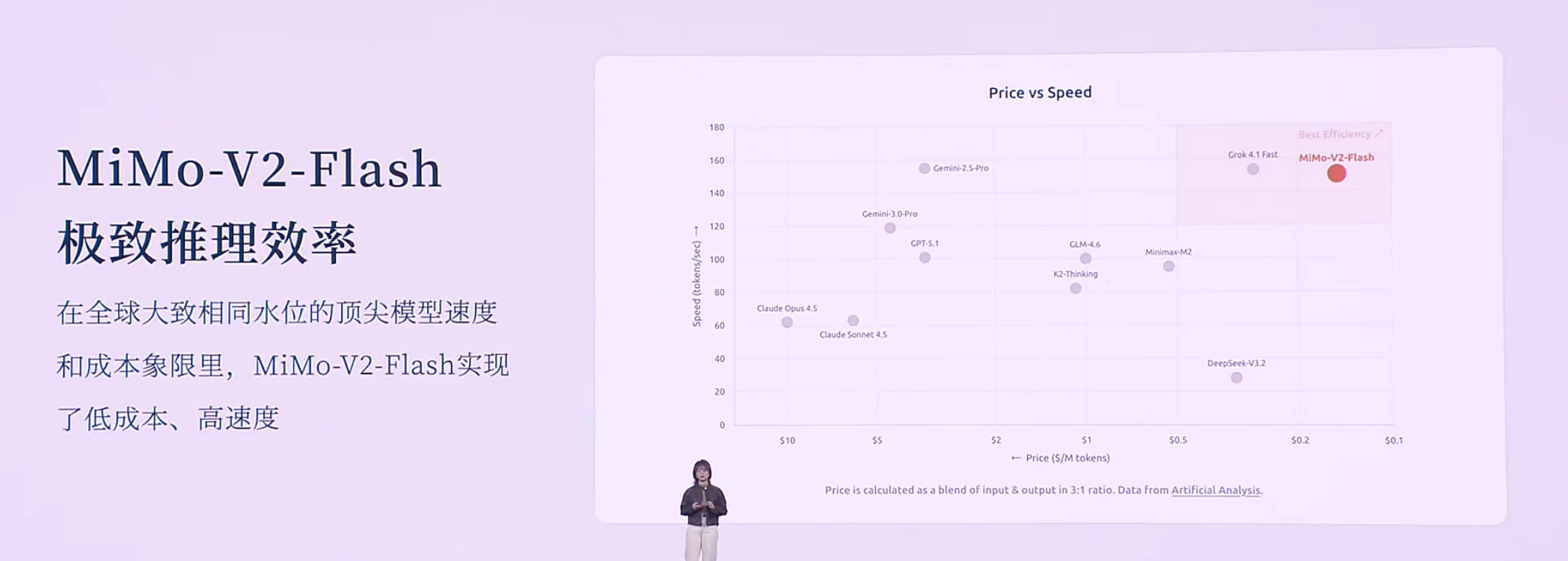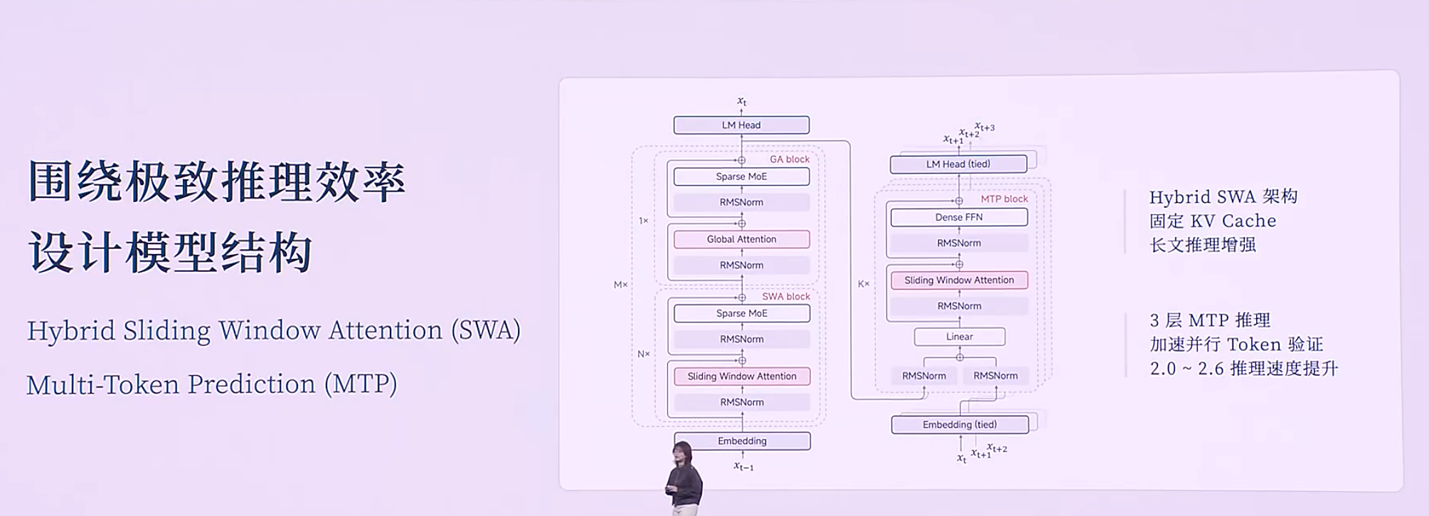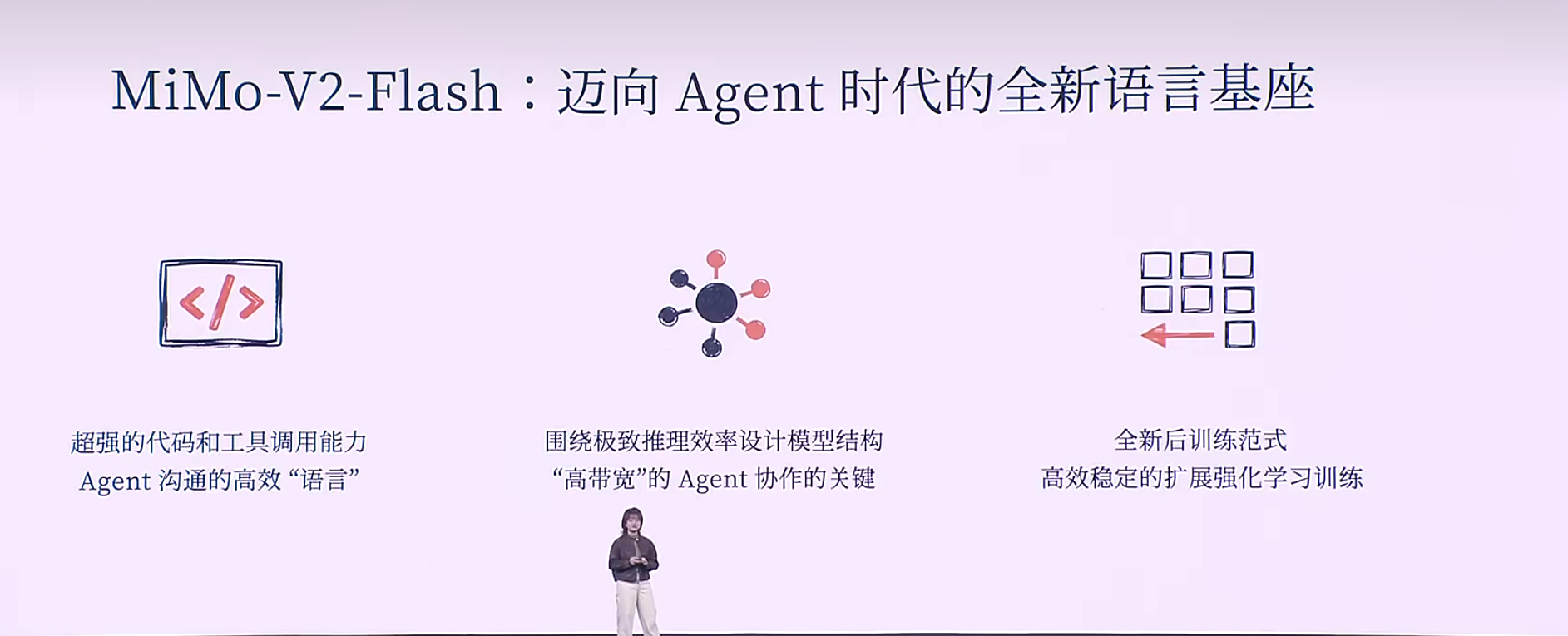 Xiaomi MiMo作为小米自主研发的首个推理大模型,备受瞩目。在演讲中,罗福莉详细介绍了此次开源上线的小米MiMo-V2-Flash,着重阐述了其三大显著特性。