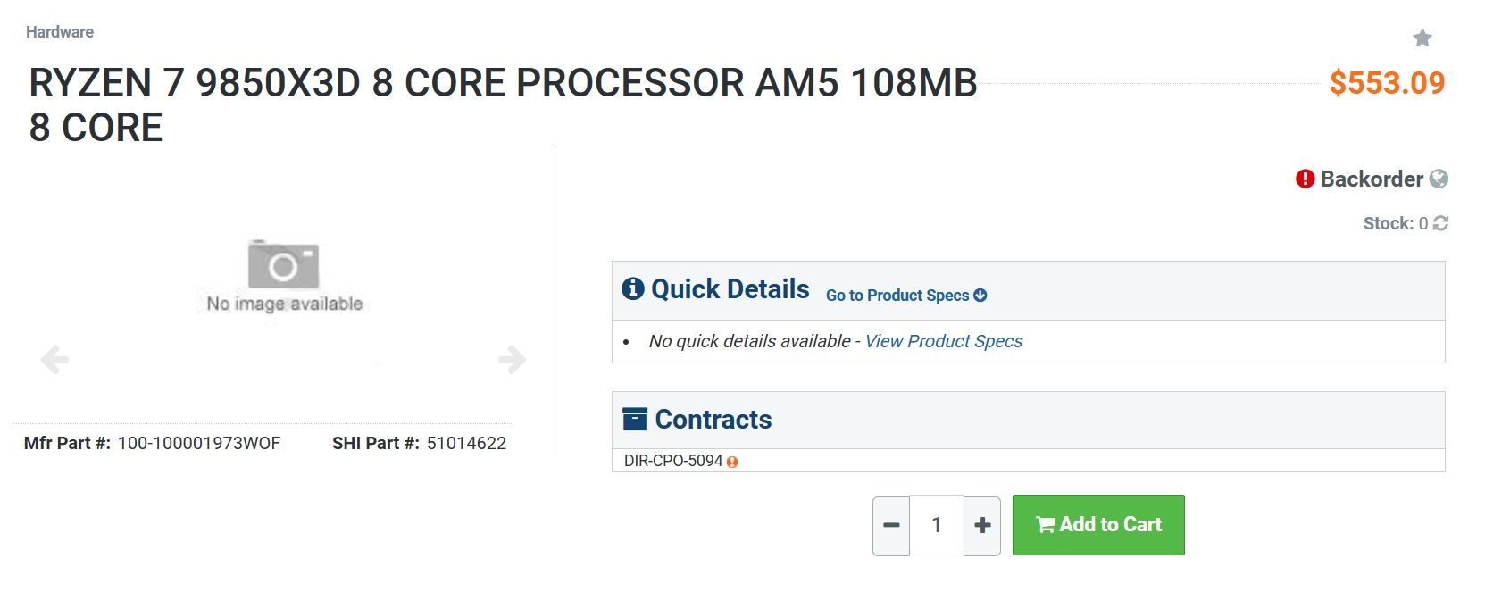 AMD正在规划两款新的9000X3D处理器,包括包括锐龙7 9850X3D和锐龙9 9950X3D2。其中锐龙7 9850X3D此前已在AMD官方网站出现,如今这款处理器又在海外零售商处提前上架,其价格信息也首次浮出水面。