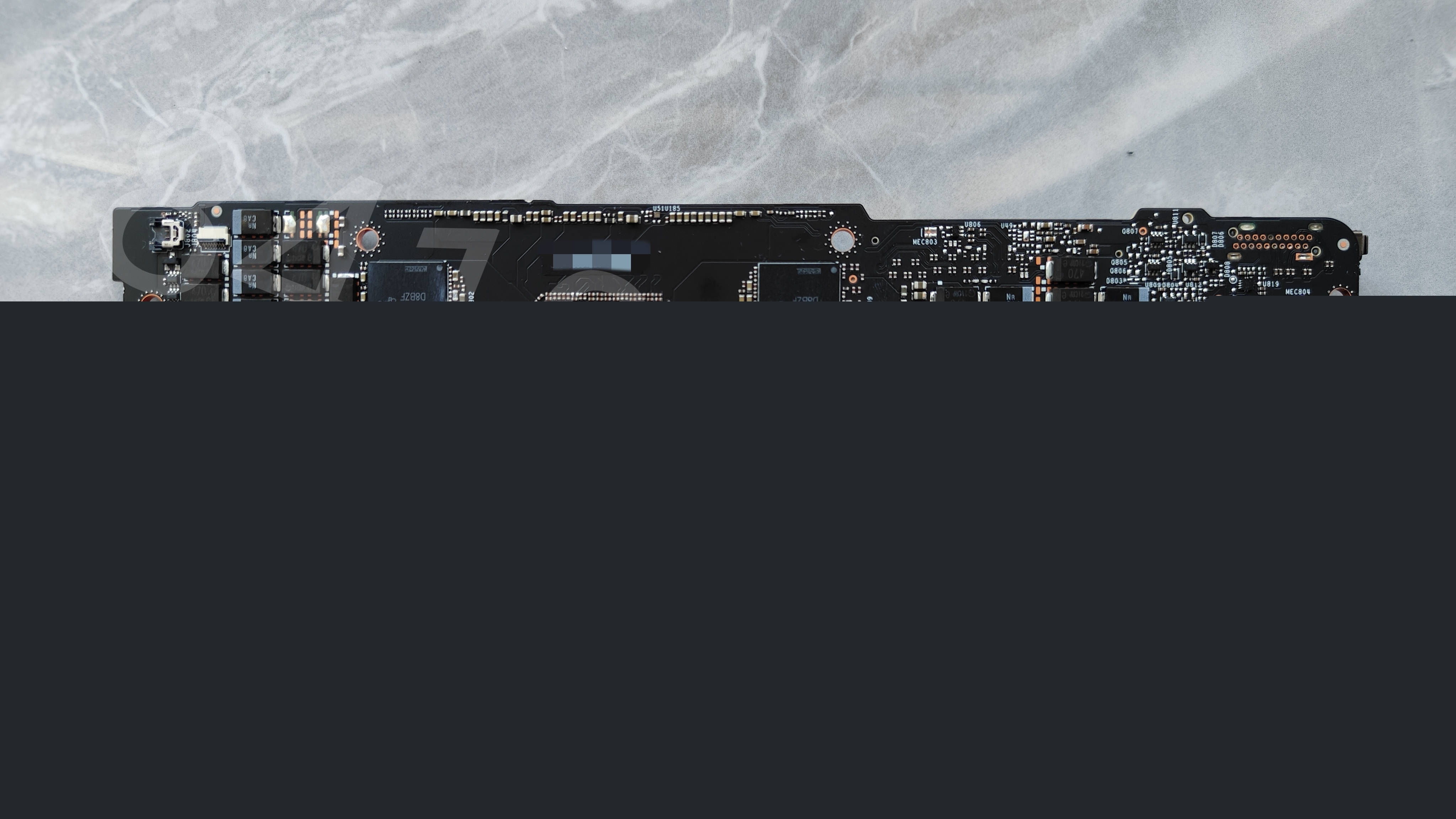 拆开后可以看到,PCB的角度翻转了90度,和挡板垂直,十分狭长,布局异常紧凑。