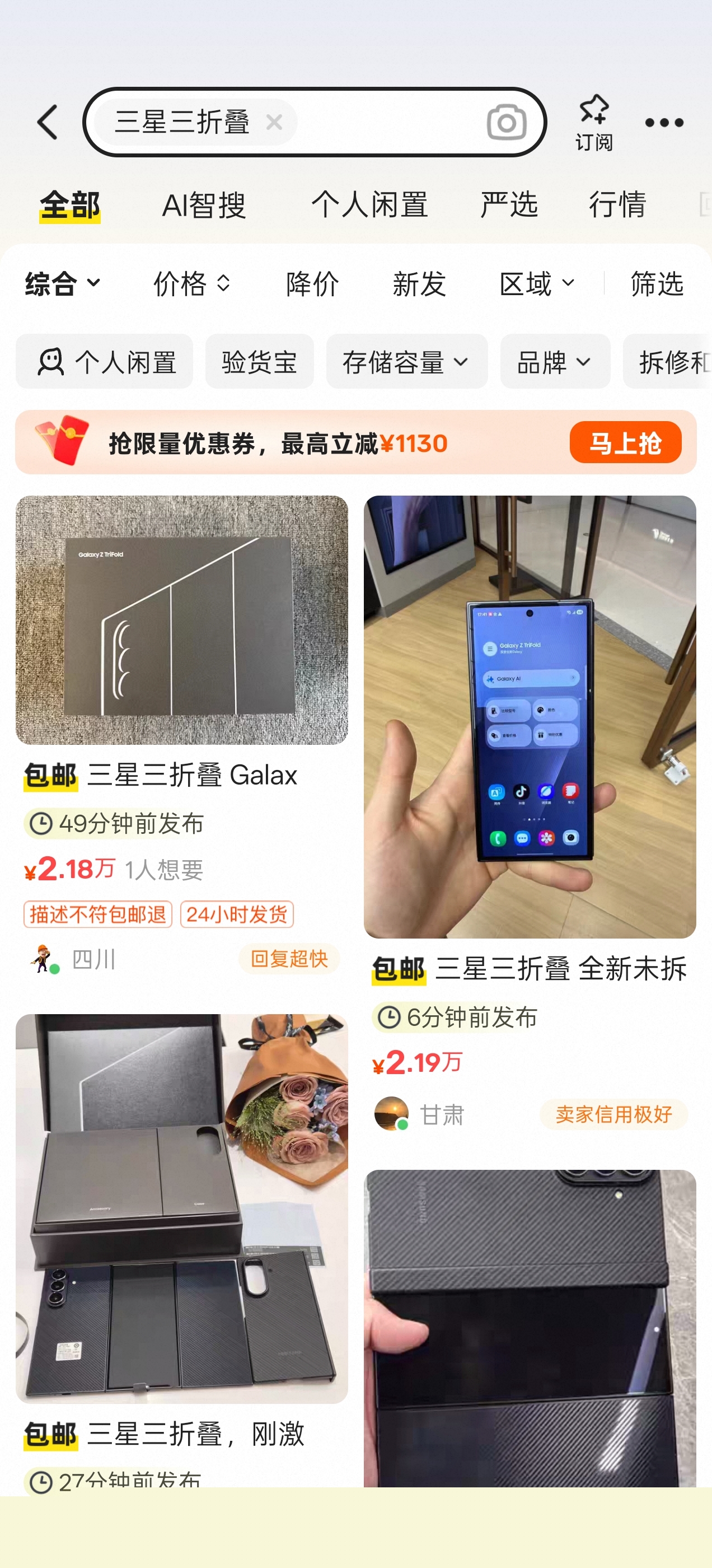 三星首款三折叠屏供不应求:黄牛加价销售 定价超2万元
