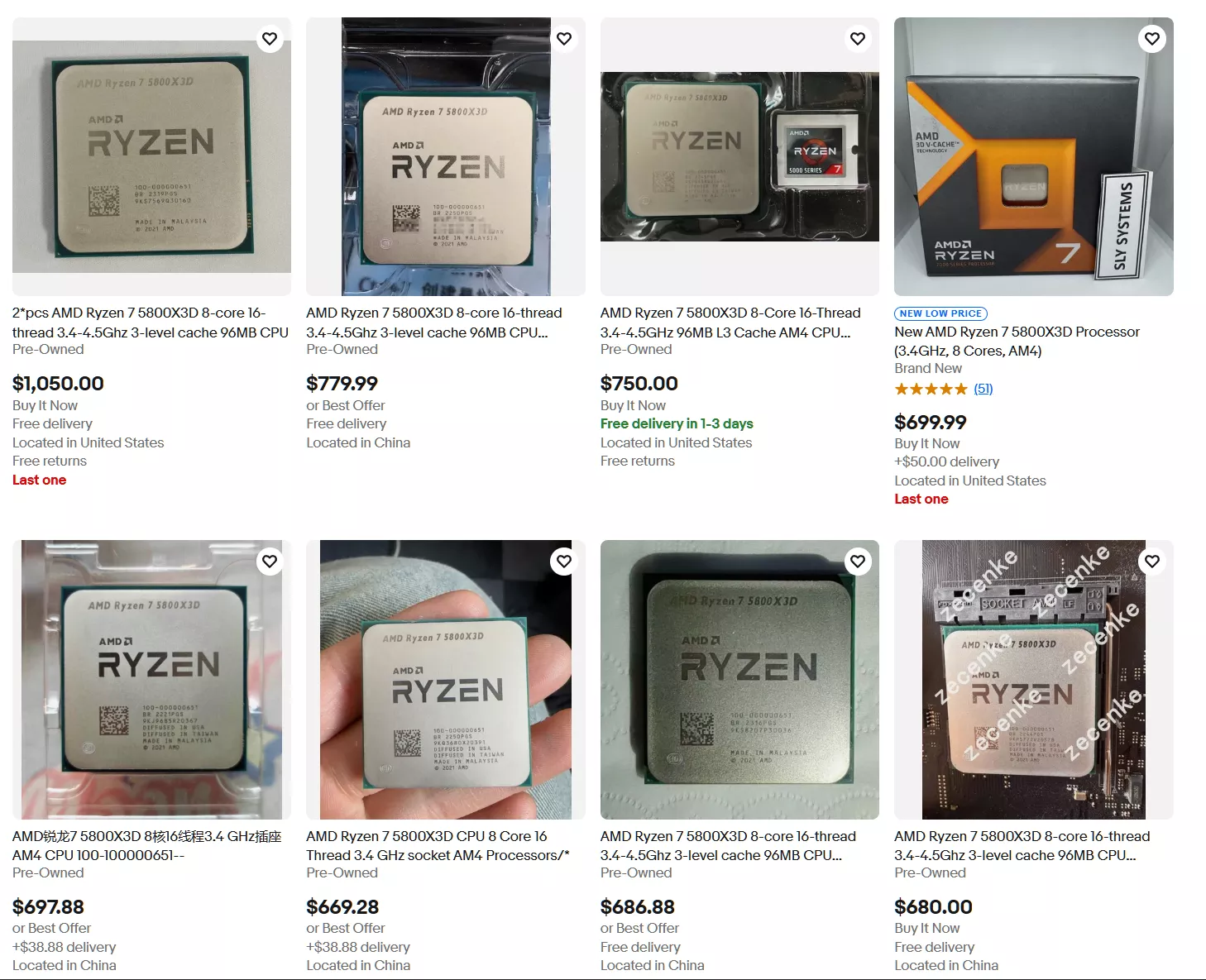 值得注意的是,在高端与新平台火热的同时,旧平台与老款型号的需求也被再次推高。报道称,Ryzen 7 5800X3D近期在eBay上的成交价格最高达到800美元,反而高于目前全新Ryzen 7 9800X3D的售价。背后原因在于5800X3D所对应的AM4平台是AMD唯一仍支持DDR4内存的平台,而在DDR5价格持续高企的背景下,不少玩家为了控制整机成本,宁愿选择在旧平台上升级高端处理器,而非投入更多预算构建DDR5新平台。