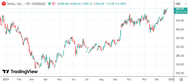 特斯拉股价逼近500美元创新高 马斯克薪酬案翻盘+FSD稳跑