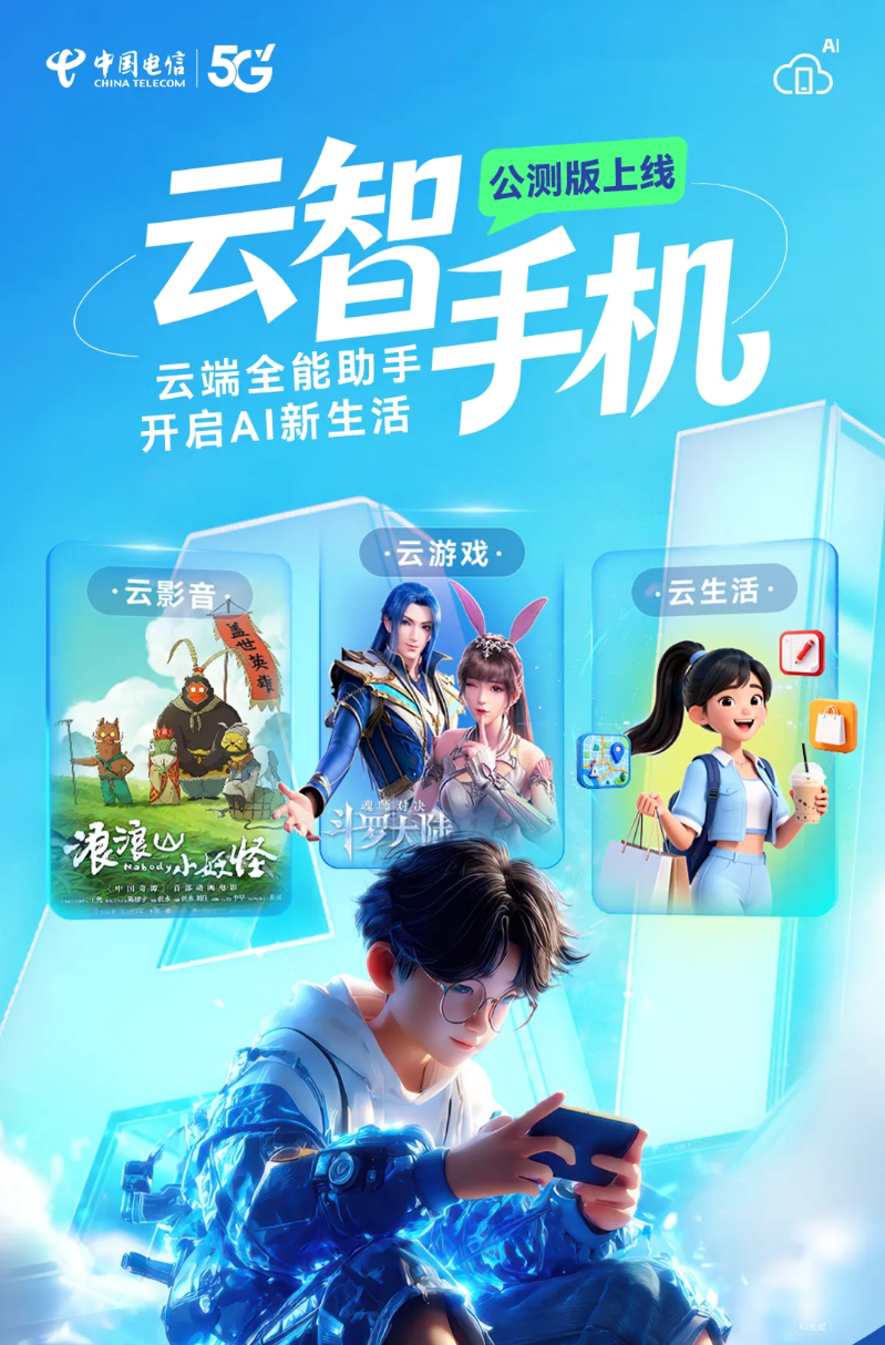 据悉,“云智手机”主要是依托5G+AI技术,解决旧机游戏运行难题,支持即点即玩和云端挂机功能,同时提供AI推荐影视内容。