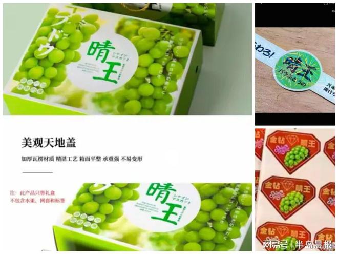 除了“晴王”产品本身之外,电商平台还有多家店铺持续销售“晴王”标签与包装箱,且价格低廉。例如,有店铺售卖所谓“晴王”不干胶贴纸,360张仅售价8.8元,店铺宣传页显示该贴纸可直接粘贴于水果表面;另有商家销售用于葡萄串的包装腰封贴纸,上面同样印有“晴王”字样并搭配日文装饰。还有电商平台店铺销售“晴王”包装纸箱,称“现货印制,100个起售”,在一家“纸工匠源头厂家”店铺中,正在销售一款外包装印有“晴王”及若干日文的加厚瓦楞纸包装盒,店内说明称其承重较强,若订单量大可定制印刷内容。这类低成本、易获取的标签与包装大量流入市场,一定程度上也助推了普通阳光玫瑰伪装成“进口晴王”进入销售环节的乱象。