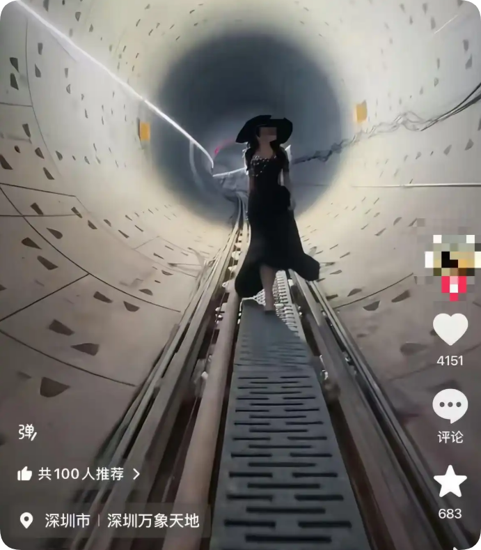 相关责任部门证实,事发深圳一在建地铁隧道。值得一提的是,目前,涉事女子已将自己账号作品清空。