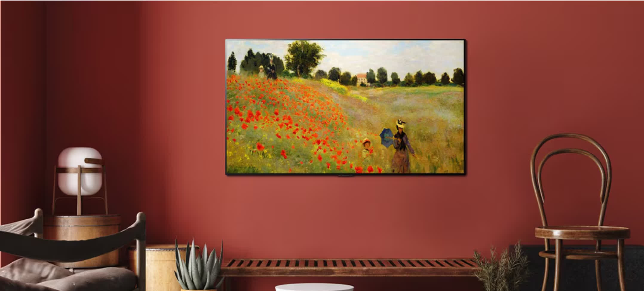 为提升“像真画一样”的显示效果,LG 表示 Gallery Mode 是与多家博物馆策展人合作开发的,可针对色彩和亮度进行优化,尽可能还原创作的视觉肌理。LG 随机附带一圈实体边框,默认为白色,同时提供可选的木纹色边框,与海信 Canvas TV 等同类产品形成正面竞争。