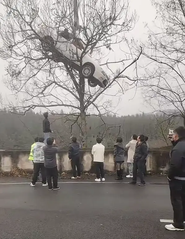 AI作品看多了,再看一些奇怪的视频时总觉得是假的,然而有时候现实更加魔幻。近日有网友分享了实拍视频,不少人看过之后纷纷表示这是2026年第一桩怪事。视频里,一辆白色轿车不知为何出现在一棵大树上,高高被挂在树杈上,车里还有人员被困,有吊车正参与救援,树下面则围满了人群,不少人举着手机拍摄着罕见的一幕。