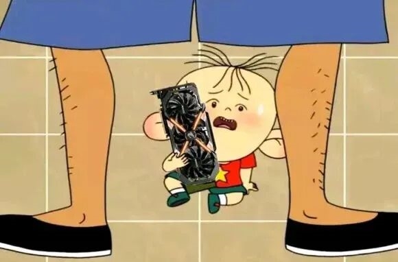 图图惊恐地表情被 P 上了显卡,体现自己买了个很贵的显卡被父母责骂: