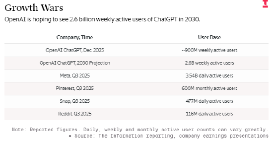 与此同时,面对激烈的市场竞争,OpenAI 首先要确保 ChatGPT 的用户规模能够持续增长。2025 年 12 月,萨姆・奥尔特曼启动 “红色警报” 应急机制,号召全公司集中精力优化 ChatGPT。同月,OpenAI 还推出多项新功能,例如在回复内容中融入更多图像信息,以期提升 ChatGPT 的吸引力。
