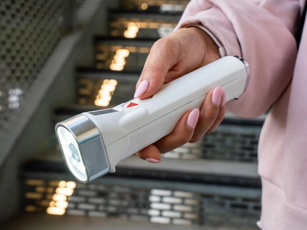 Timeli打破了手电筒单一照明的功能局限,整合六大核心能力:高功率照明、高清视频录制、高分贝警报、实时GPS定位、双向语音通话,以及与应急调度中心的直连通道。