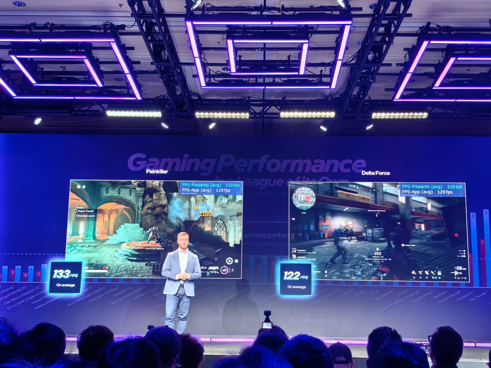官方实测数据显示,锐炫B390在《Painkiller》中的平均帧率可达133FPS,《三角洲行动》也能达到122FPS的超高帧率。