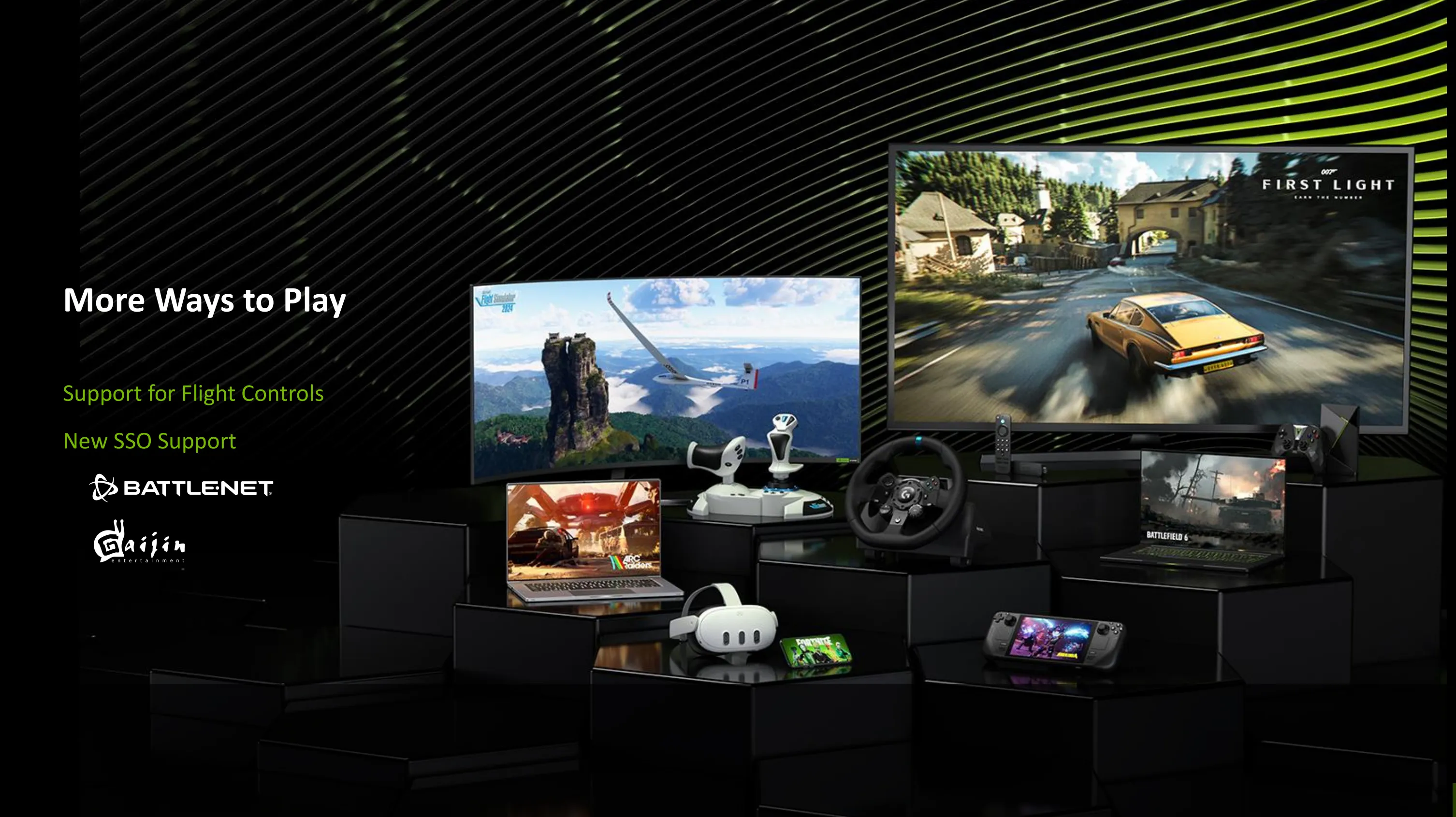 针对飞行模拟爱好者,英伟达宣布 GeForce Now 将新增对专业飞行控制设备的完整支持。更新推出后,来自 Thrustmaster 和罗技(Logitech)等厂商的摇杆、方向盘式操纵杆(yoke)等设备,都可以在云端环境下用于诸如《微软飞行模拟》等游戏。通过这一系列更新,GeForce Now 试图在平台覆盖和配件兼容性方面进一步缩小云游戏与本地 PC 游戏体验之间的差距。