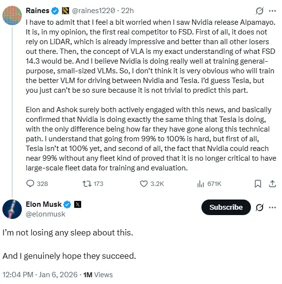 英伟达自驾“吓倒”特斯拉股价?马斯克自信表示:毫不担心