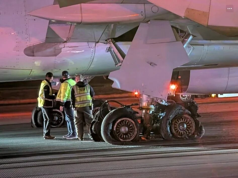 据美国联邦航空管理局初步通报,事故核心原因指向主起落架轮胎全损,具体诱因仍在调查中,不排除与强烈气流导致的硬着陆、轮胎老化或跑道异物有关。