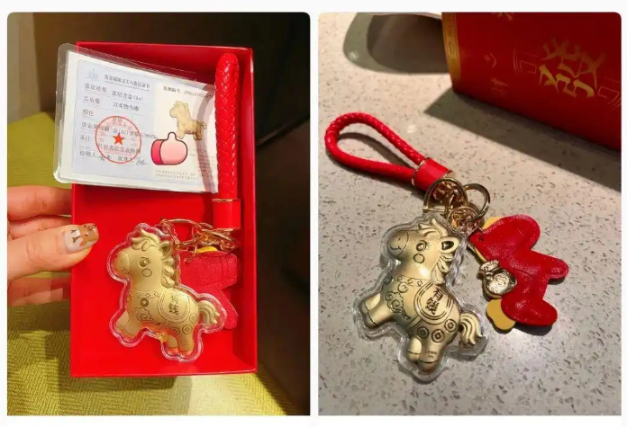 多数消费者反馈,尽管黄金含量极低,但“马上有钱”的美好寓意、红色皮绳设计以及附带可拆卸硅胶小马(方便儿童玩耍)等细节,仍有效提升了用餐体验,契合新年氛围。