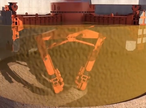 “启明号”开挖直径达24米,设计开挖深度75米,主机高度约13米,可承受8bar水压。其整机分为地面与井下两大部分,采用创新的双臂协同开挖技术。