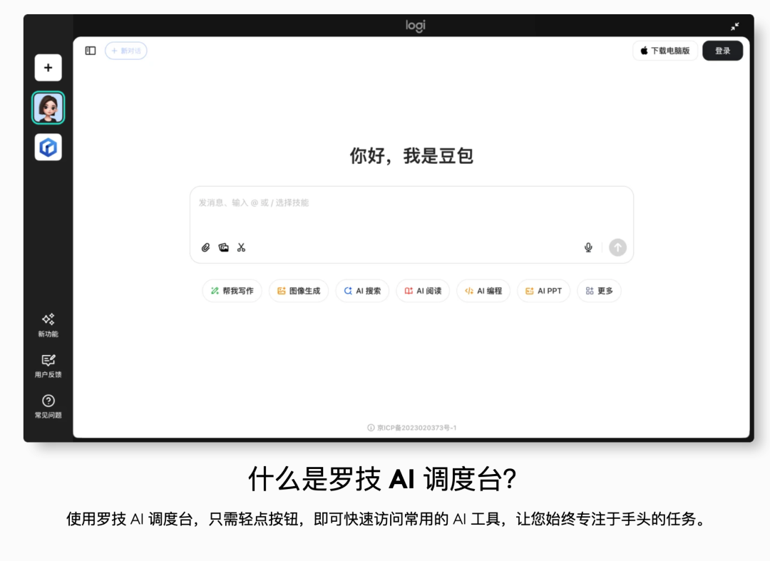 还有罗技 AI 调度台,整合了豆包、DeepSeek 各家 AI 助手。