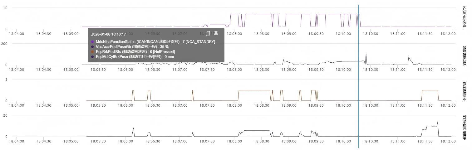 根据对用户授权的车辆数据进行分析,结果表明:事故发生前和事故发生时,车辆始终处于【NCA_STANDBY】状态,即辅助驾驶功能未激活。