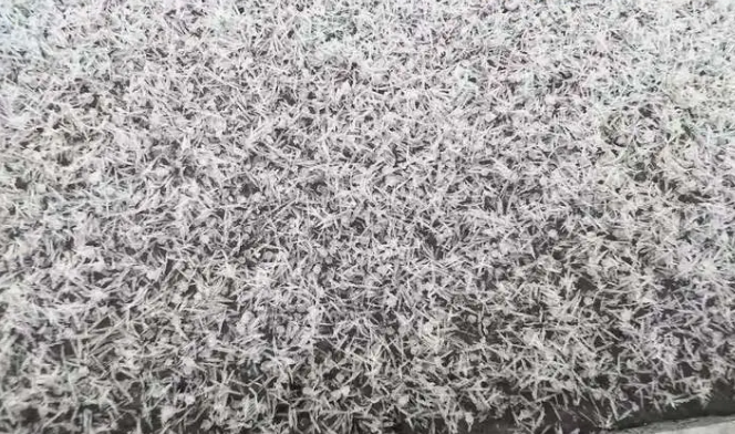 其次,空气湿度必须“恰到好处”。湿度过高时,冰晶容易吸收水汽并分叉,形成星状雪花;而此次济南上空气湿度偏低,冰晶缺乏充分的水汽补充,只能沿单一方向生长,最终呈现为针状。