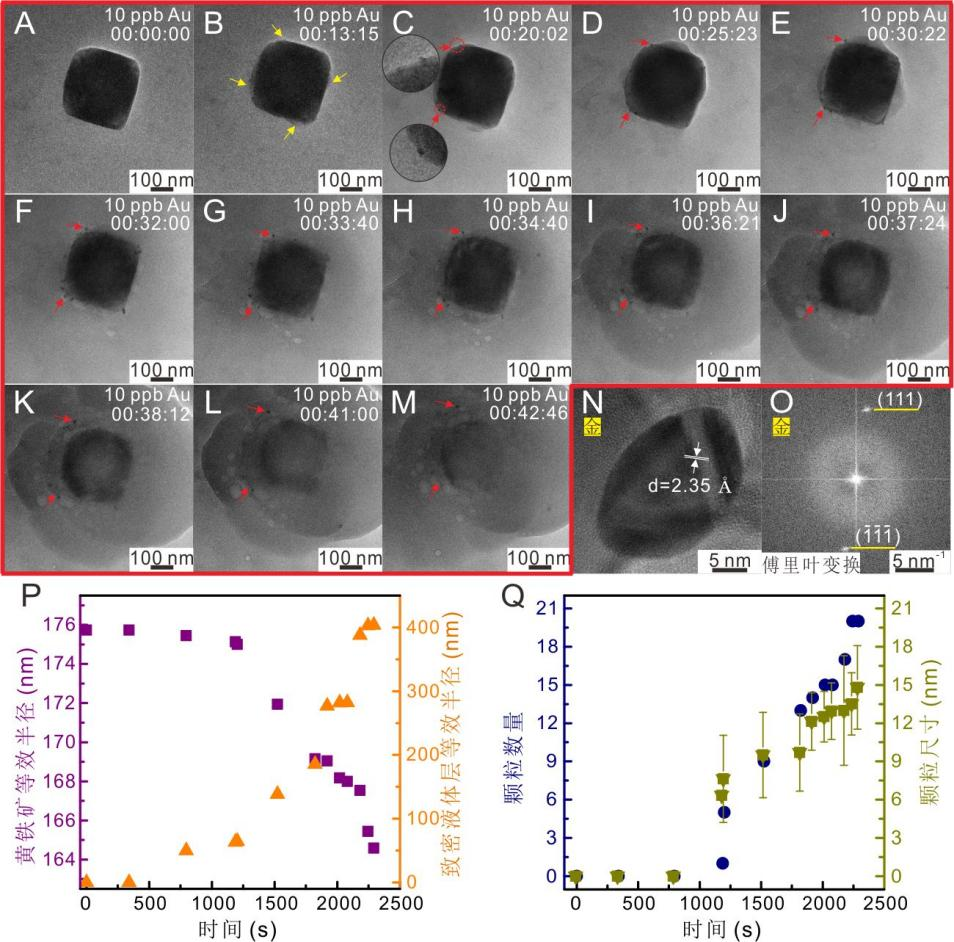 近日,中国科学院广州地球化学研究所科研团队传来重磅成果。他们利用原位液相透射电子显微镜技术,在纳米尺度下首次“直播”自然界中黄金纳米颗粒在黄铁矿表面的形成动态过程,并提出黄铁矿诱导金沉淀的新机制。