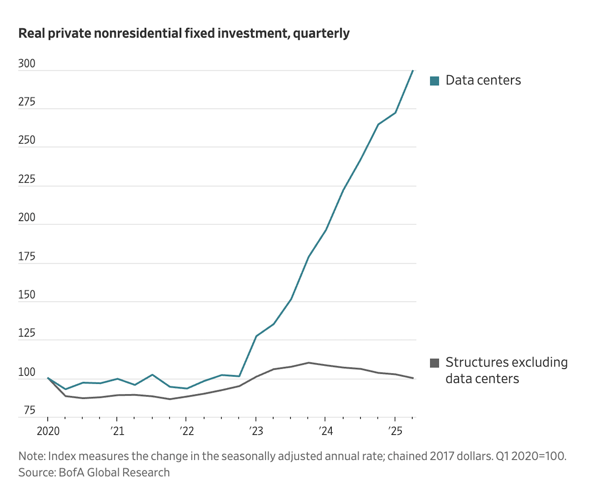 尽管面临劳动力紧缺、材料涨价和关税压力多重掣肘,数字经济的持续扩张仍在驱动新一轮基础设施建设。随着 AI 模型的参数规模和应用场景不断扩展,企业争相锁定长期算力资源,建设方也顺势追随数据和算力布局。 当前,美国各大服务器集群上空的塔吊依然繁忙运转,而数据中心建设也成为在本轮房地产放缓周期中少数仍保持强劲增长的板块之一。