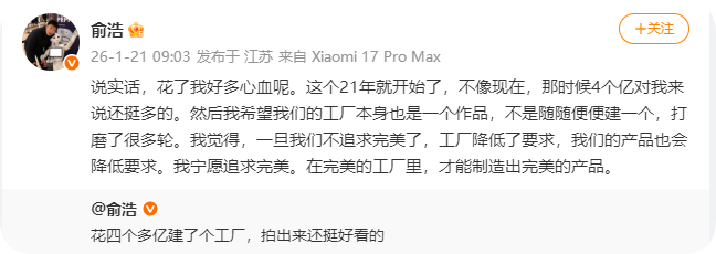 追觅CEO俞浩晒4亿打造的工厂:21年4个亿对我来说还挺多的