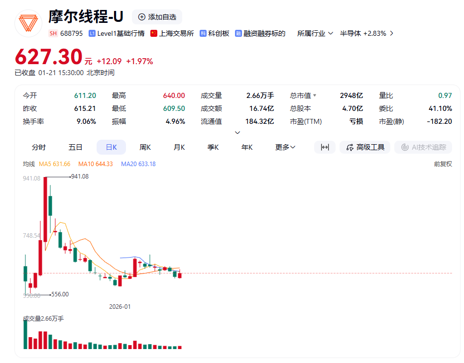摩尔线程:预计2025年净亏损10个亿 股价已从峰顶跌去1/3