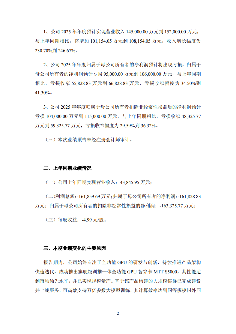 得益于人工智能产业蓬勃发展及市场对高性能GPU的强劲需求,公司产品竞争优势进一步扩大,市场关注度与认可度持续提升,推动收入与毛利增长,整体亏损幅度同比收窄。