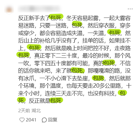反观鳌太线这边,很多人都是下了班之后,坐高铁匆匆赶来。并且,为了避开检查,大多都会挑选在半夜人少的时候,偷偷进山,导致开局身体状态就拉了一半。