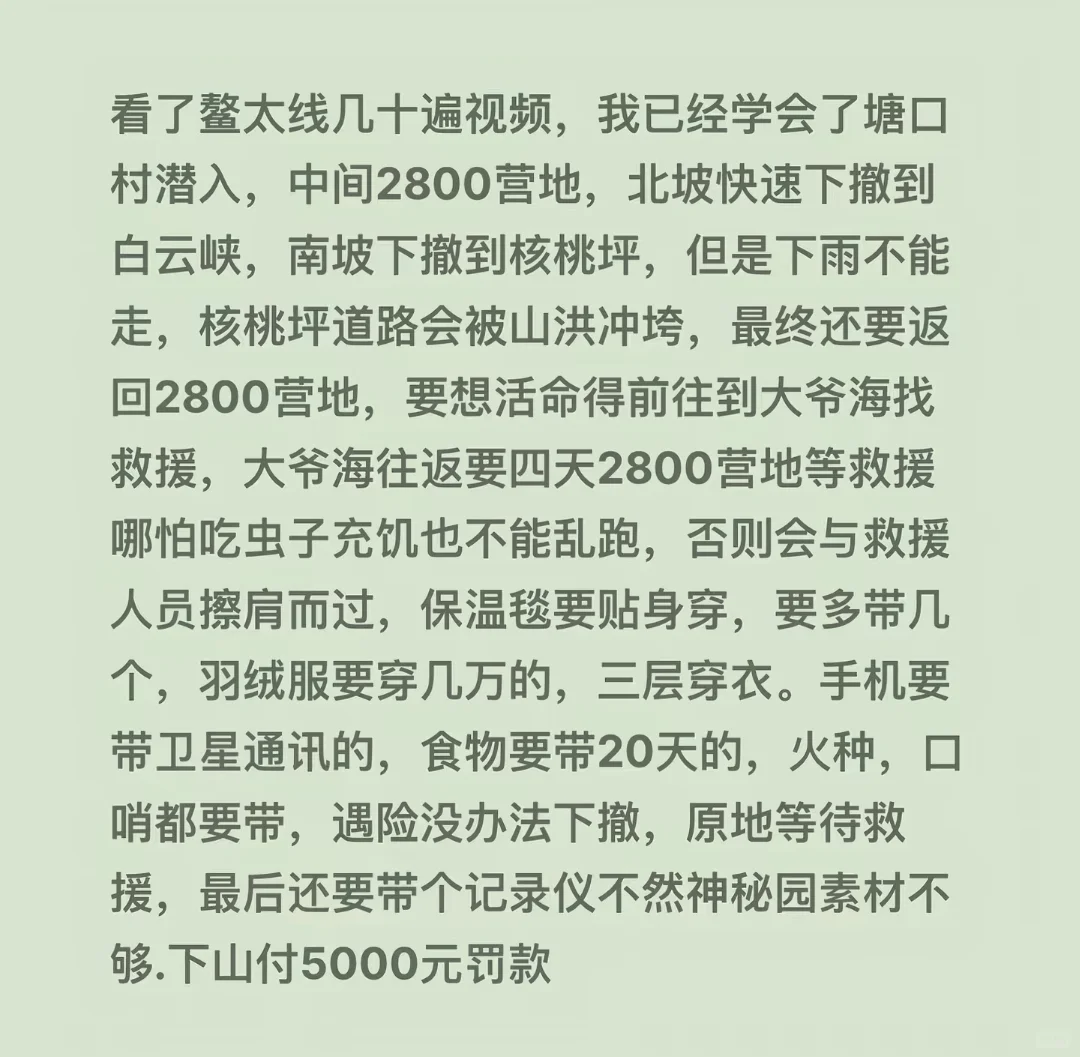 同时,鳌太线的历年出事人数,又让很多人产生了“ 我穿越了,我就是最牛 ”的幻觉,很多人把它当成“ 户外毕业考”。