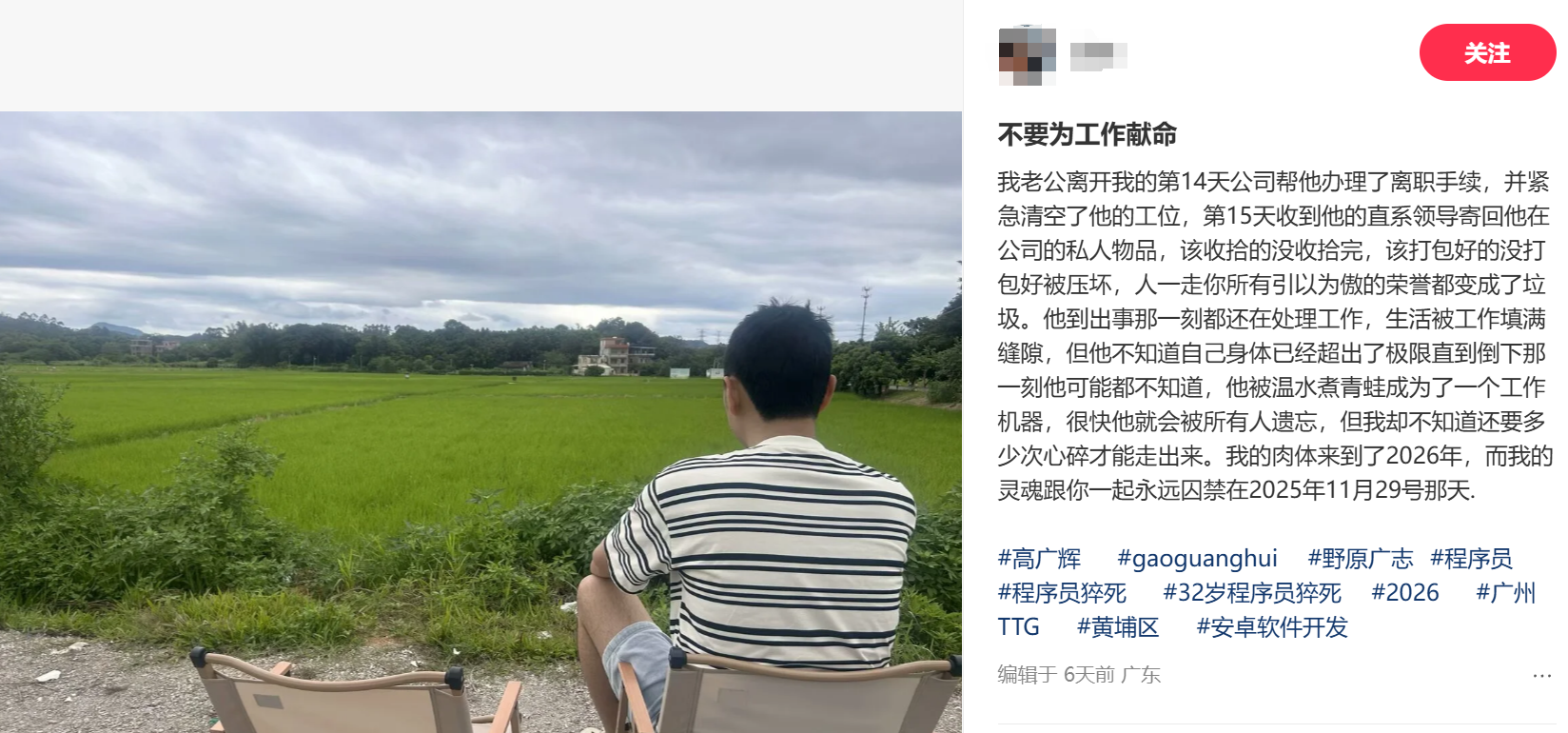广东一名32岁程序员猝死 妻子曾多次催其下班