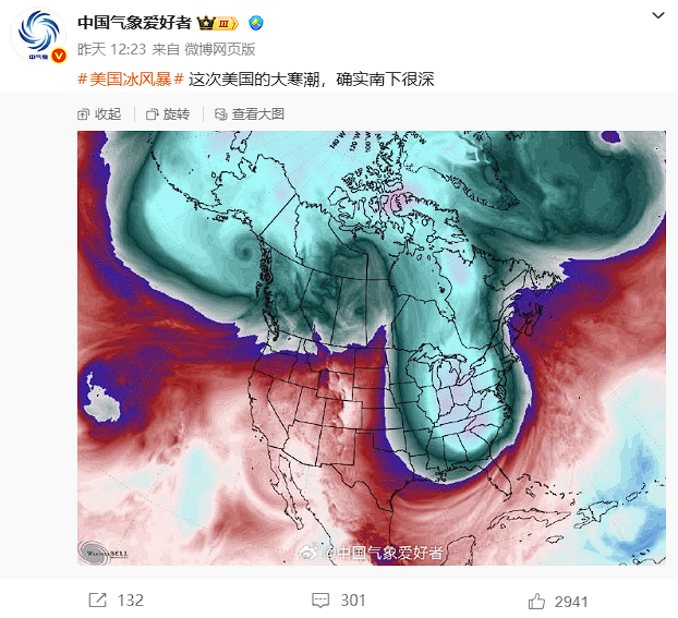 北极涡旋异常分裂极寒席卷美国 留学生称比南极还冷