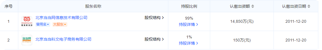 企查查股权穿透结果显示,无锡当当网信息技术有限公司的股东为北京当当网信息技术有限公司与北京当当科文电子商务有限公司,系当当旗下关联企业。