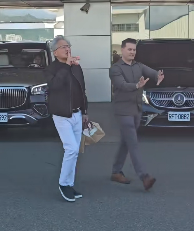 NVIDIA CEO黄仁勋结束大陆行之后,今日搭乘私人飞机抵达台湾。现场出现喜感一幕,这位亿万富翁下飞机的第一件事,竟然是现场给媒体发养乐多和三明治,气氛轻松融洽。