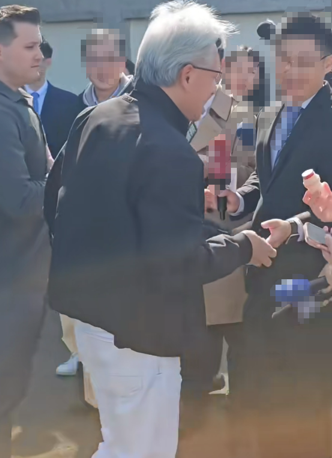 据悉,黄仁勋下午1时18分左右走出商务中心大门,身穿黑色夹克和白长裤,面带笑容发养乐多与三明治给现场守候的媒体,并为粉丝签名,还提醒粉丝“不能将签名球拿去卖”。