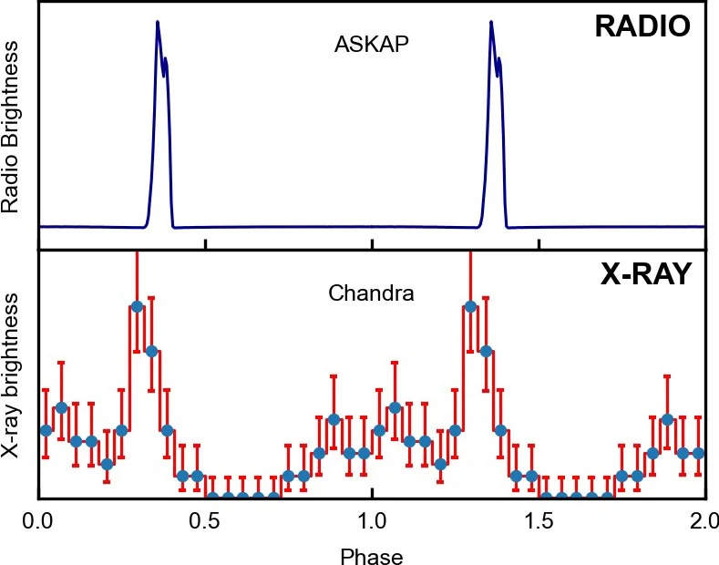 研究人员指出,ASKAP J1832-0911 每隔约 44 分钟便爆发一次持续约两分钟的辐射脉冲,其节律稳定而漫长,被归类为“长周期瞬变源”(Long-Period Transient,简称 LPT)。这类天体以无线电脉冲为主要特征,而 ASKAP J1832-0911 则是迄今首个被确认同时发出 X 射线辐射的 LPT,为揭示这一新型天体的物理本质提供了关键线索。