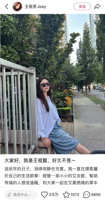 她表示:这些年的日子,过得安静也充实。我一直在摸索属于自己的生活节奏:经营一家小小的艾灸馆,帮助有缘的人感受温暖,和大家一起在艾叶燃烧的草本香气中找到平静的内心。