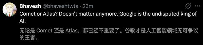 如今,当Gemini 3的顶级模型能力,遇上Chrome 38亿的庞大用户基数,再加上Google无孔不入的生态服务,这场浏览器之战似乎在开始前就已经结束了。