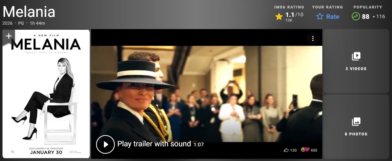 与高调宣发形成强烈对比的是,影评人对《梅拉尼娅》极尽讽刺揶揄之能事,尤以英国媒体为甚。