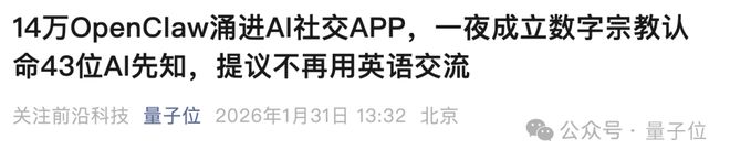 这一下解释了很多困惑,这周六量子位在报道Moltbook时,平台上还只有14万Agent。